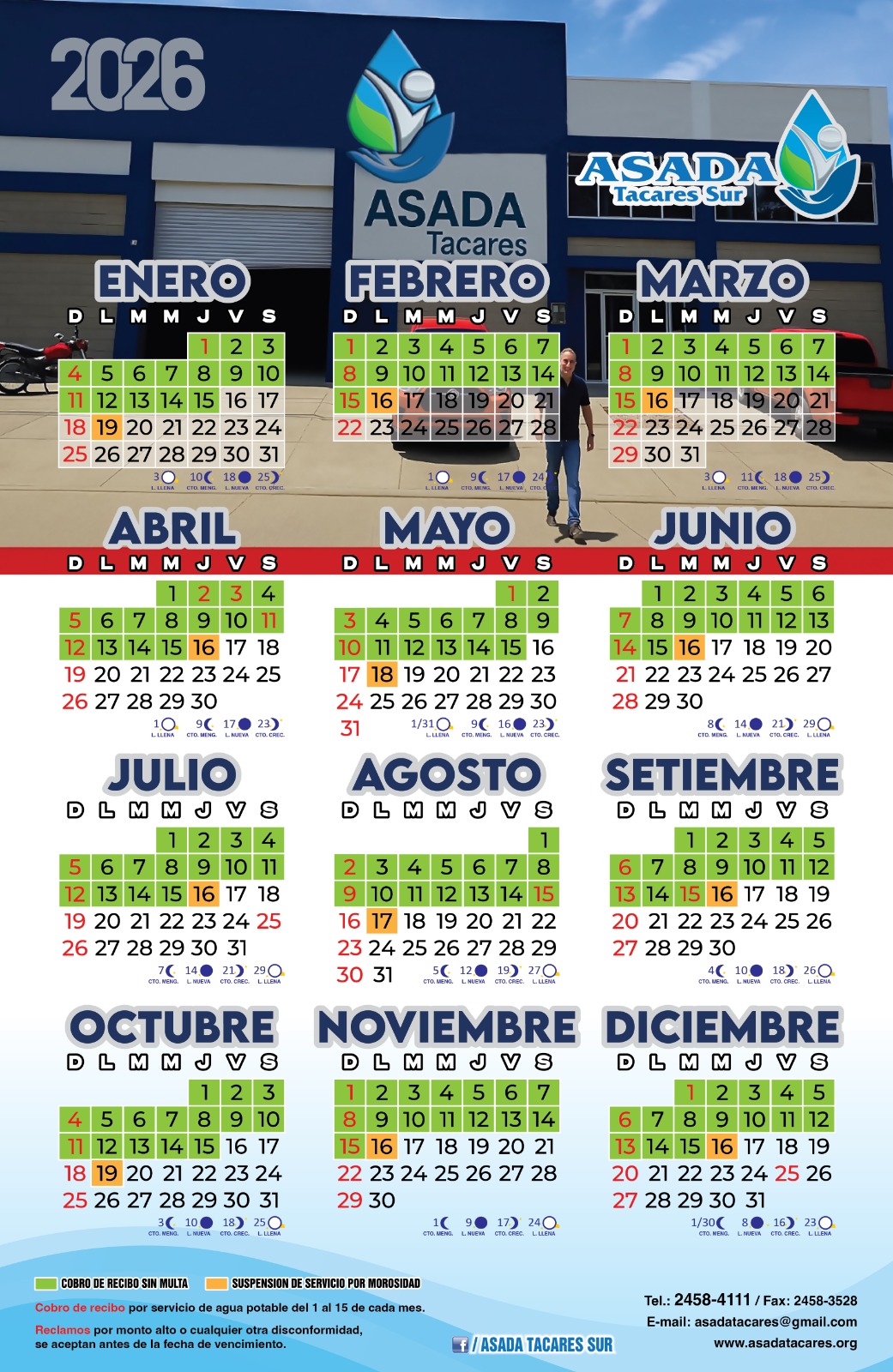 Inicio Información Importante Días de Cobro: 01 al 15 de cada mes.Suspencion de servicios por morosidad: Dia 16 de cada mes en adelante.Para mas información consultar en el siguiente calendario: CALENDARIO 2026 Últimas Noticias